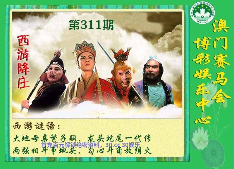 311期西游记: 大地母亲繁子嗣,龙头蛇尾一代传 两强相斗争地头,勾心斗角放阴火 解析:大地解得大数和地肖蛇羊鸡狗鼠虎;母亲解得女肖兔蛇羊鸡猪,两强解得两大君王肖龙虎;地盘解得地肖蛇羊鸡狗鼠虎 综合七肖:虎龙蛇羊鸡狗鼠 综合五肖:虎龙蛇羊鸡 综合三肖:虎龙蛇 |