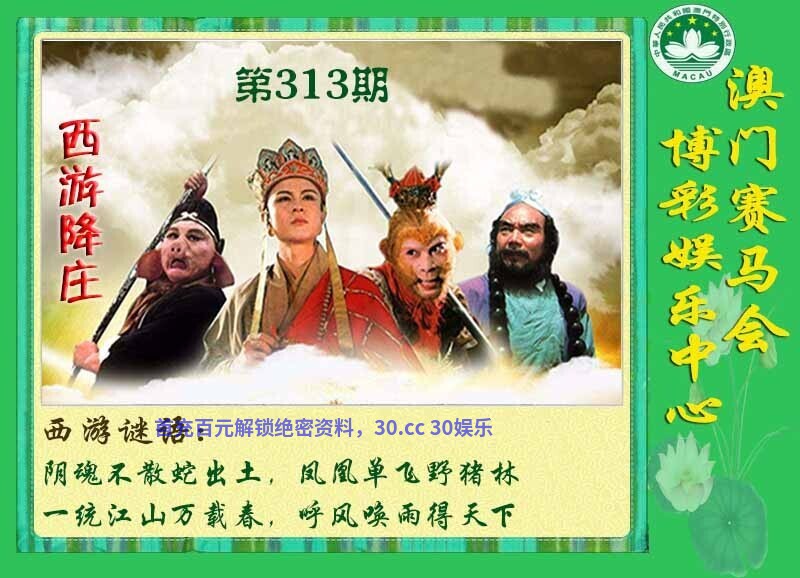 313期西游记: 阴魂不散蛇出土,凤凰单飞野猪林 一统江山万载春,呼风唤雨得天下 解析:阴,看阴肖,蛇出土,蛇肖,土,指的是土肖,野猪林,猪肖,一统江山皇帝龙虎,呼风唤雨风肖虎兔龙,雨肖蛇马羊 综合七肖:蛇猪虎兔龙鼠牛 综合五肖:蛇猪虎兔龙 |